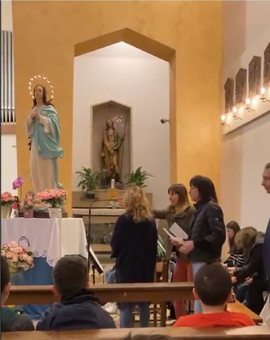 iL CORO DI AZIONE CATTOLICA , IN ONORE DI SANTA LUCIA, HANNO CANTATO ‘VORREI’ SOTTO LO SGUARDO DELLA MADONNA E DI GESU’ RISORTO, PERCHE’ IL CONDIZIONARE ‘VORREI’ DIVENTASSE LA REALTA’ DEL SOGNO DI SANTA LUCIA.