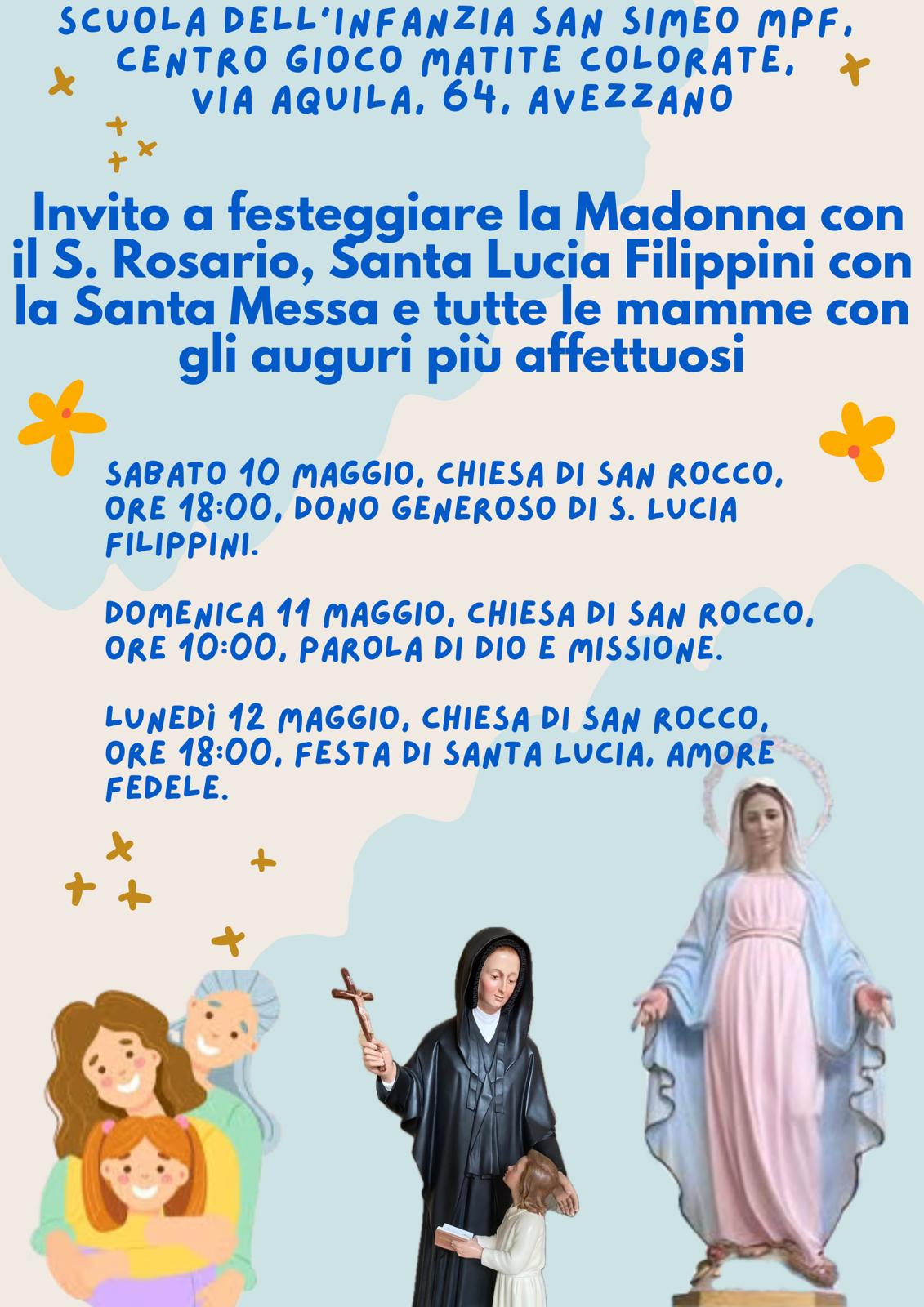 La nostra scuola e tutte le scuole delle Maestre Pie Filippini celebrano la festa della mamma sempre con grande fervore ed affetto. Viene celebrata la seconda domenica del mese di maggio, il mese della Madonna, la Mamma per eccellenza.